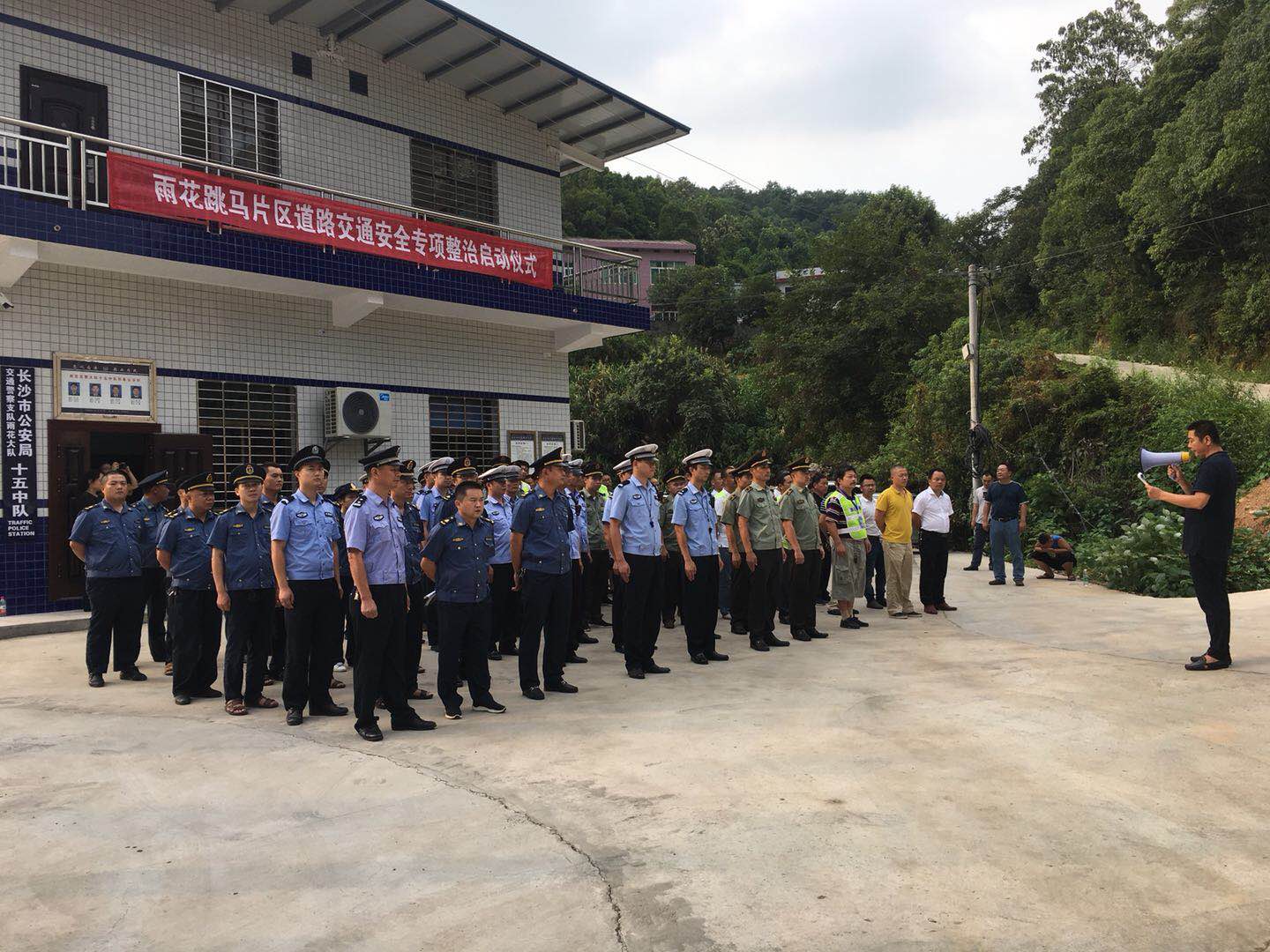 为有效防范和遏制事故的发生,进一步加强跳马片区道路监管执法工作,严厉打击道路交通非法违法运输行为,按照区委、区政府主要领导指示,2018年8月10日下午五点,由区安委办牵头组织,雨花跳马片区道路交通安全专项整治工作小组在跳马涧交警岗亭前坪进行了誓师大会,正式拉开了为期三个月的跳马片区道路交通安全专项整治行动的序幕。