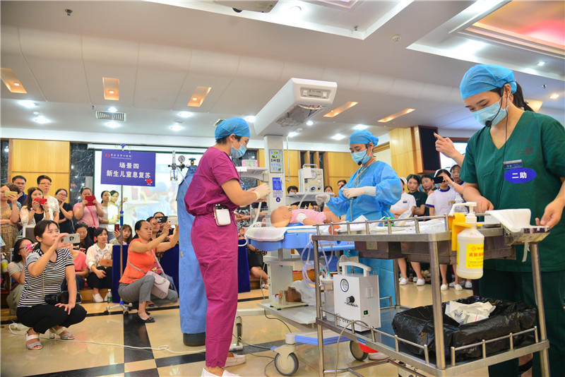 全面二孩政策实施后,高龄孕产妇比例、发生孕产期并发症的风险明显增加,危重孕产妇与新生儿管理和救治任务显著加重。为积极应对全面二孩政策所带来的产儿科安全风险,进一步强化雨花区危重孕产妇和新生儿救治中心的应急救治能力,提高医务人员对危急重症孕产妇的识别和综合救治水平,有效控制孕产妇和新生儿死亡率。9月11日,在长沙市中心医院二楼多功能厅举行了雨花区危重孕产妇和危重新生儿急救演练。