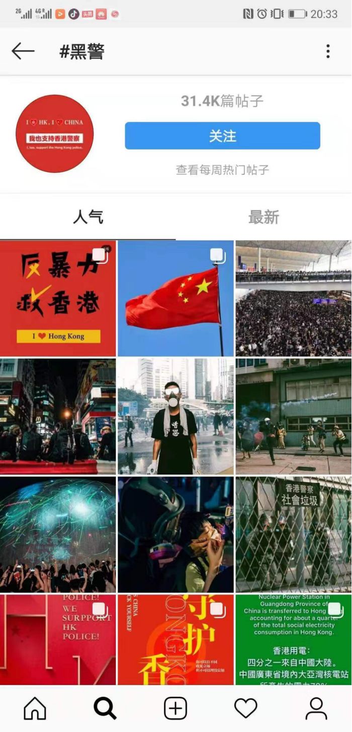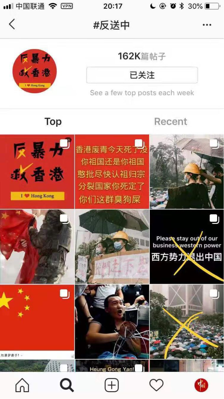 出征不久,境外社交平台Instagram上,已经变成满场中国红——