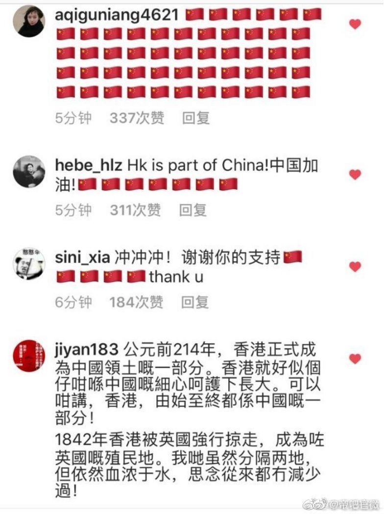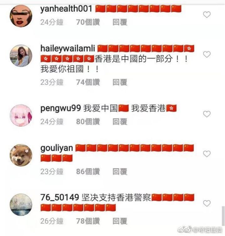 一个小时刚过,自发组成的“帝吧大军”,接连攻陷“港独”话题,乱港分子发起话题下的热门贴,都是满满的正能量,就连头像都变了样——