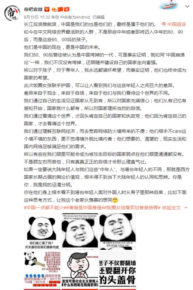 此次饭圈女孩联手护国,可以让人看到我们与这些年轻人之间巨大的差异。