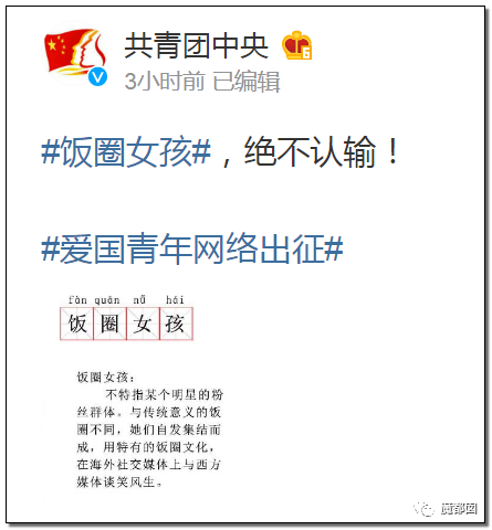 共青团中央甚至为饭圈女孩叫好!