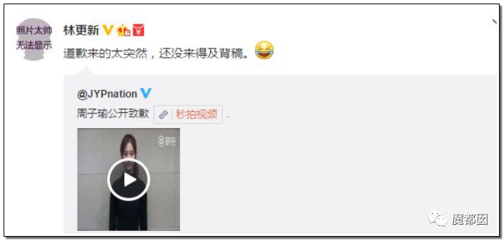 那次周子瑜事件闹得沸沸扬扬,而且所谓的道歉也是非常的敷衍,林更新首先发难。