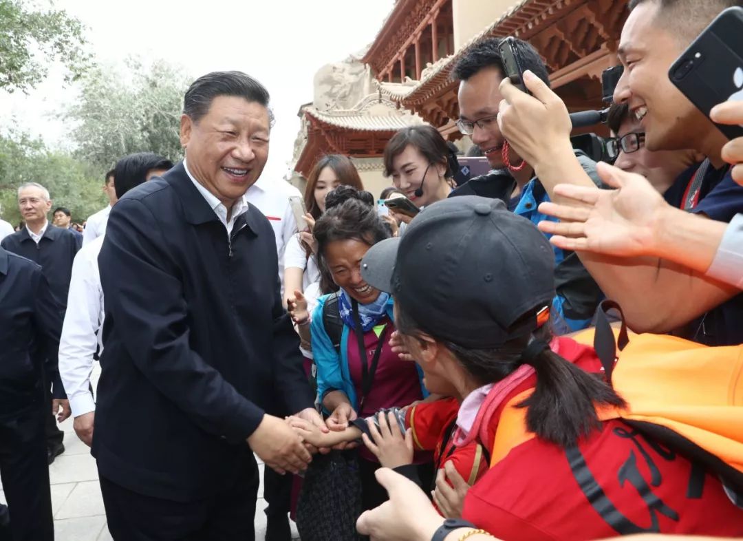 考察敦煌莫高窟,习近平同游客热情交流