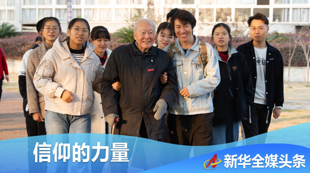 老人指着一棵香樟树,笑着对学生说:“这些啊,以前都是小树苗,是40年前,我和同事们带着像你们这么大的孩子种下的。我老了,可你们还很年轻,中国的未来,取决于现在的你们树立什么样的信仰。”