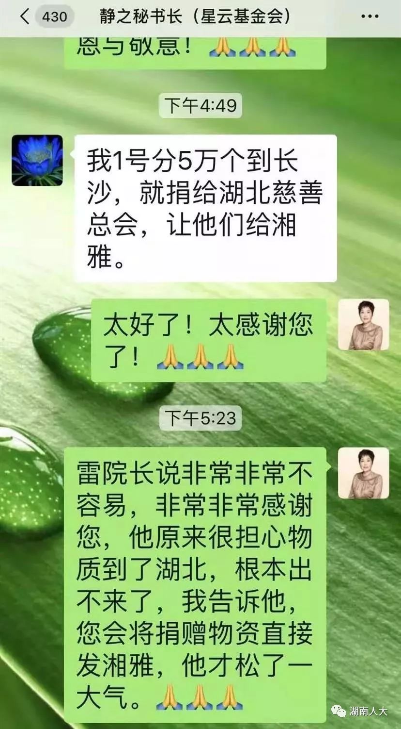 这个春节,省人大代表、湖南乐创公益慈善发展中心主任李丽一天也没有休息过,夜里三点还在筹措口罩等防护资源。组建工作组联合相关公益基金会,向湘雅医院、长沙市第一医院捐赠10万个医用外科口罩,联合相关慈善发展中心支援N95医用口罩5万个。