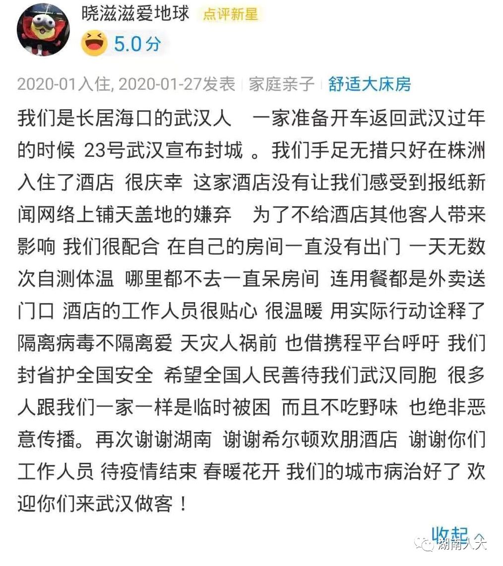 株洲市荷塘区人大代表、株洲亿都房地产有限公司总经理汪俊所在公司酒店收留从海口赴武汉过年的湖北人,诠释两湖一家。
