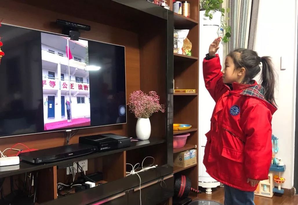 “全体肃立,升国旗、奏唱国歌,行注目礼,少先队员敬队礼。”2月10日上午,雨花实验小学学子的家中纷纷举行了一场特殊的升旗仪式。