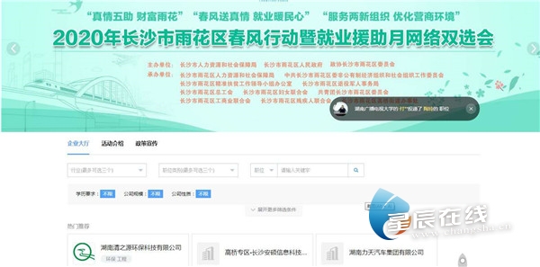 (雨花区人社部门积极助力企业解决招工用工难,推出2020年雨花区“春风行动”暨就业援助月网络双选会。)