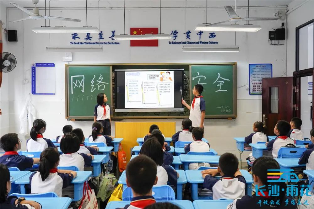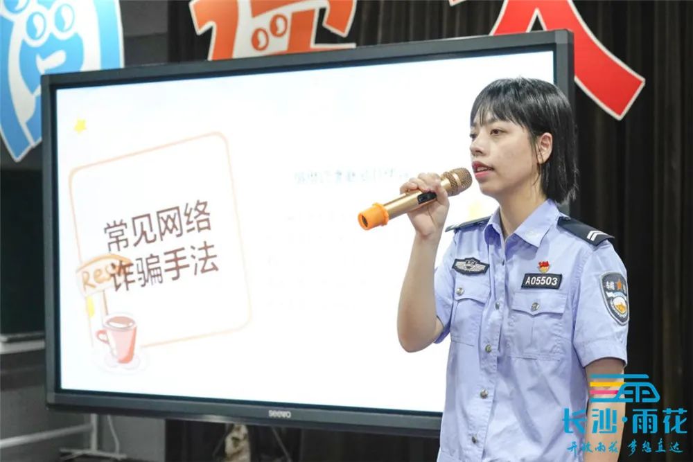 “同学们要加强自制力,增强自律意识,自觉抵制网吧的诱惑……”9月15日,雨花区在长郡雨花外国语左家塘学校开展了以“网络安全为人民,网络安全靠人民”为主题的“网络安全进校园”示范学校创建日暨反电诈宣传活动。本次活动由雨花区委网信办、区文明办、区教育局、雨花公安分局网安大队等部门共同举办。