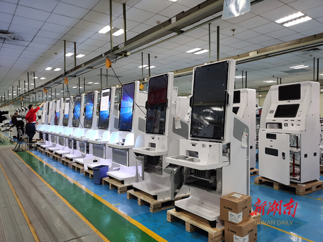 创新突破带来新的增长,湖南长城金融同样深有体会。12月初,长城金融赶制订单产品,智能化车间生产节奏紧凑。“这批自助终端设备即将发往沿海一家银行。”工作人员介绍,这种“升级版”的VTM,在ATM机的基础上,增设了发卡制证、票据受理、硬币兑换、人脸识别、视频交互等功能,一台设备相当于一个“小银行”。