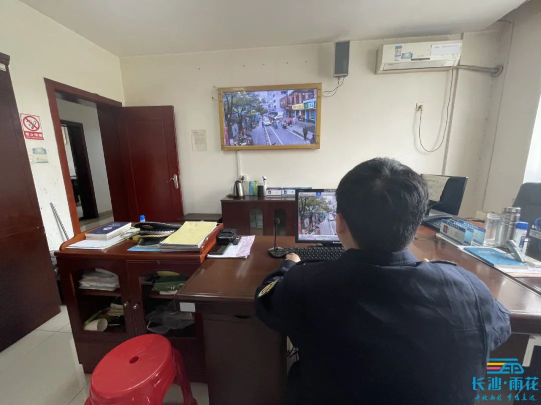 前期,为寻求彻底解决问题之道,经深入走访调研,与街道及相关单位共同会商,经中队党支部研究决定,大队党委批准,于3月10日在韶山中路省中医附一医院沿线安装了两部高清摄像头和高音喇叭,中队办案办公室设立在线监控室,实行24小时有人值守,从此韶山中路这一路段路面市容环境秩序情况可以通过远程监控,在中队监控室大屏幕上一览无余!