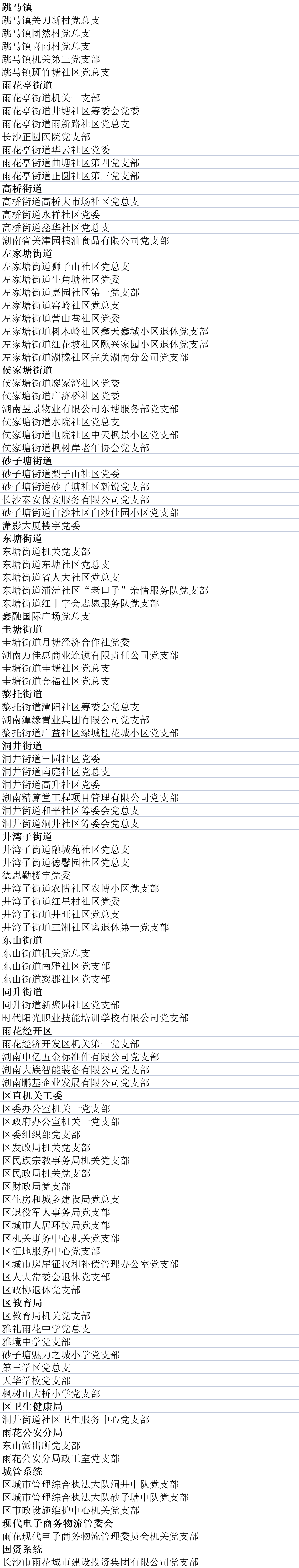 三、雨花区先进基层党组织拟表彰对象(100个)