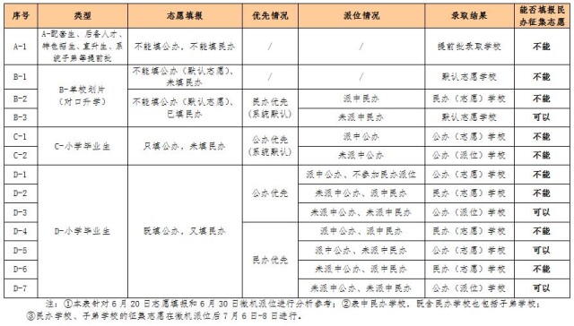 ①志愿填报了民办学校、子弟学校,公办志愿未派中或虽派中公办志愿但选择民办优先的小学毕业生;