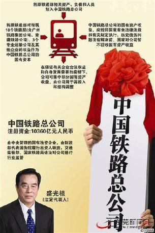 据中国铁路总公司有关负责人介绍,2013年3月14日下午,中国铁路总公司成立大会在原铁道部举行,中共中央政治局委员、国务委员兼国务院秘书长马凯出席并讲话。中国铁路总公司注册资金为10360亿元。盛光祖为公司法定代表人。