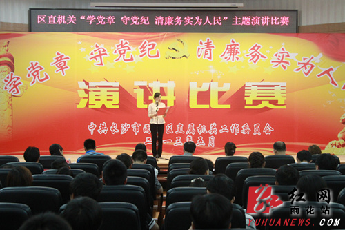 雨花区新闻网5月20日讯(通讯员 袁霄飞) 为深入学习贯彻党的十八大精神,全面落实中央“八项规定”和省、市、区关于党员干部思想、作风、廉政建设的要求,积极引导区直机关广大党员干部大力投身雨花经济建设和社会发展实践,以良好的精神风貌和一流的工作作风为“五新雨花”建设贡献智慧和力量。近日,雨花区直机关工委举办了“学党章、守党纪,清廉务实为人民”主题演讲比赛。