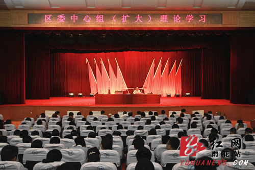 雨花区新闻网5月21日讯(宣传部供稿)为深入学习贯彻中央、省、市、区关于加强作风建设相关会议精神,进一步增强全区各级党员干部党章意识、廉政意识和发展意识,5月17日下午,雨花区委举行中心组(扩大)理论学习,特邀了省纪委常委、省检察院副检察长、党组副书记常智余作党风廉政建设专题辅导和市委党校政治学与领导科学教研部主任曹习华副教授作党章学习辅导讲座。