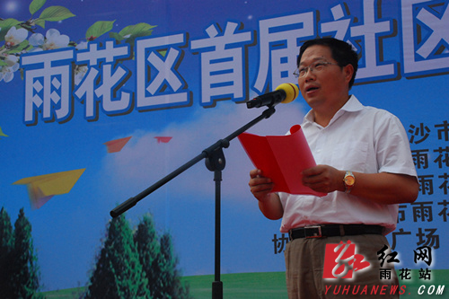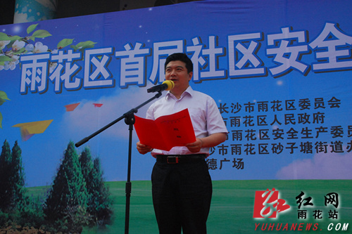 活动仪式上,区长邱继兴发表了热情洋溢的致辞。省安监局副局长李大剑随后发表了重要讲话,他指出,很高兴能够受邀参加雨花区首届“社区安全文化节”启动仪式,并代表省安委办、省安监局,对雨花区近年来取得来之不易的成绩表示了热烈祝贺。他就如何开展好“安全生产月”活动进一步要求道:安全生产工作重点在落实责任; 安全文化建设关键在贴近基层; 安全形势好转根本在长效机制。