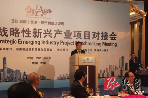 红网雨花站6月21日讯(分站记者 晏伟 姜兆轩) 6月20日,本届“港洽周”主题推介活动之一:湖南(香港)战略性新兴产业项目对接会,在香港港岛香格里拉酒店举行,省委常委、宣传部长许又声,省经济和信息化委员会主任谢超英出席对接会。长沙雨花经开区作为此次港洽周重点推荐的唯一开发区,管委会主任郭四军在对接会上做了专题演讲,重点介绍了园区的特点优势和发展历程,并就相关招商项目进行推介,获得各方的一致好评。此外,雨花经济开发区还专程拜访了和记黄埔、毕马威、德勤香港总部,就园区的地产深度开发、现代服务业打造及企业境外上市进行了深入交流沟通。通过此次港洽周,有效提升了园区在港影响力,为下阶段的招商工作打下了坚实的基础。