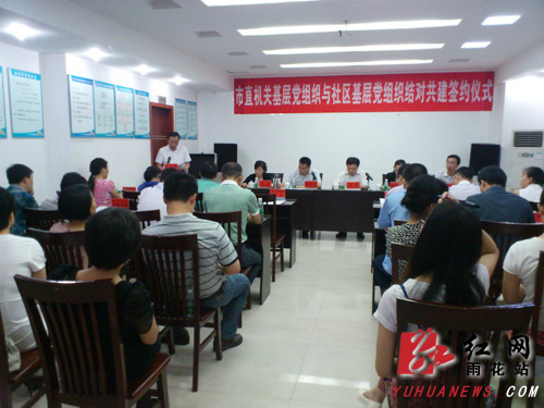 雨花区新闻网6越8日讯(组织部供稿)6月27日上午,市直机关部门党委与雨花区社区(筹委会)党组织结对共建签约仪式在侯家塘街道活力社区举行。市直机关工委常务副书记易冒、市委组织部党员管理处处长何晓芳莅临指导,区委常委、组织部长、统战部长冯聪龙,区委组织部副部长、基层办主任王青春,侯家塘街道工委书记贺芳出席指导,市直机关部门单位党组织负责人、区相关街道分管副书记,以及8个结对的社区(筹委会)党组织书记参加会议。