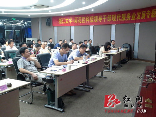 雨花区新闻网7月5日讯(组织部供稿)7月4日上午,雨花区科级领导干部现代服务业发展专题研修班开班仪式在浙江大学玉泉校区永谦活动中心举行,区委常委、组织部长、统战部长冯聪龙,市委组织专家服务中心干部胡勇、浙江大学相关工作人员和全体参训学员参加开班仪式。 在开班仪式上,研修班班主任、浙大继教学院经管中心湖南项目中心叶晓枫对浙江大学的基本情况进行简单说明,对本次研修班的课程安排和授课教师进行详细介绍,对全体学员提出了具体的学习要求,全体学员在永谦小广场集体合影。仪式结束后,上海市产业转移发展研究中心副主任,复旦大学、中国浦东干部学院特聘教授项俊辉就战略性新兴产业发展与产业结构调整课题进行了精彩授课。 为加快现代服务业中心建设,雨花区依托浙江大学专业教育平台,组织部分街道行政正职、部门单位正职及部分副科级领导干部共53人赴浙江大学,进行为期8天的系统学习和综合训练,帮助科级领导干部丰富相关专业理论和业务素质,更新思维方式和管理理念,必将进一步提升领导干部促进现代服务业健康科学发展的水平和能力。