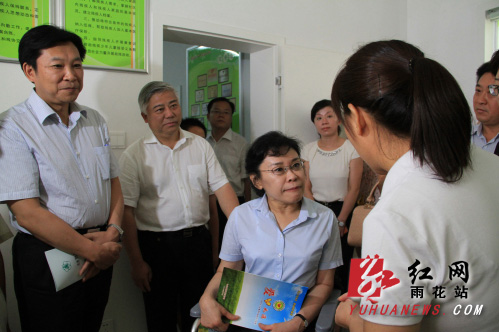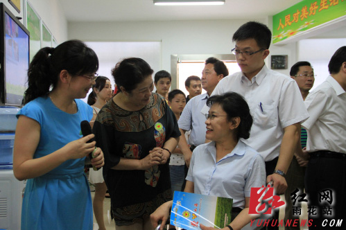 雨花区新闻网7月24日讯(残联供稿)7月23日下午,中残联主席张海迪一行莅临雨花区检查指导残疾人工作。张海迪主席一行先视察了侯家塘街道廖家湾社区志愿助残工作站。一进门,张海迪主席的眼光就被廖家湾社区志愿助残工作的宗旨吸引。“把党团支部变成团结部,把自由人变成组织人,把业余时间变成文明时间,把富裕资源变成爱心资源”,张海迪主席反复读着这几句话,然后对着大家说,“这几句话总结得真是太好了!残联工作中就是缺少这种指导性的、总结得很精辟的话。”
