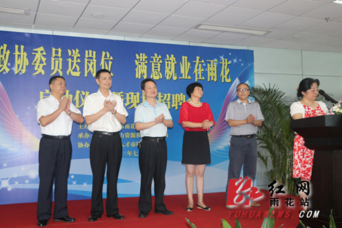 此次主题为“政协委员送岗位,满意就业在雨花”的活动,从2013年7月持续至9月。区政协主席、党组书记李电晖,区委常委、常务副区长王雄文,区政协副主席康长萍,市政协办公厅副调研员、宣教处处长袁治伟同志,雨花农村合作银行董事长邓来发等领导出席仪式,区人力资源和社会保障局局长王石主持仪式,各街道、社区主管领导及企业招聘代表参加。区委领导们先后致辞,并由区政协主席、党组书记李电晖宣布此次活动正式启动。