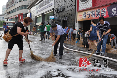 雨花区新闻网8月14日讯(环卫局供稿)为进一步推进全国城市文明程度指数测评迎国检工作,营造良好氛围,8月14日,区委书记周杏武,区委副书记、区长邱继兴,区委常委、区人武部政委叶方舟,副区长邹犇淼,区委党校校长杨仕斌,区政府副调研员刘广平等一行冒着高温酷暑,带领区、街、社区的党员干部上街一起打扫卫生,清理街道。