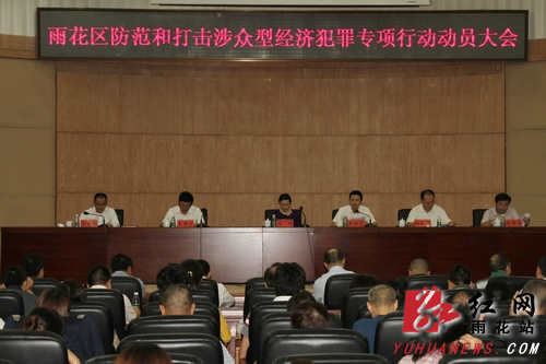 会上,区人民政府副区长、区防范和打击涉众型经济犯罪专项行动领导小组常务副组长余宏卿作动员报告,对区防范和打击涉众型经济犯罪专项行动进行了全面的安排和部署。区委常委、区委办主任、区委政法委书记、区防范和打击涉众型经济犯罪专项行动领导小组副组长王维宁宣读了《雨花区关于规范整顿金融秩序、防范和打击涉众型经济犯罪专项行动的工作方案》。