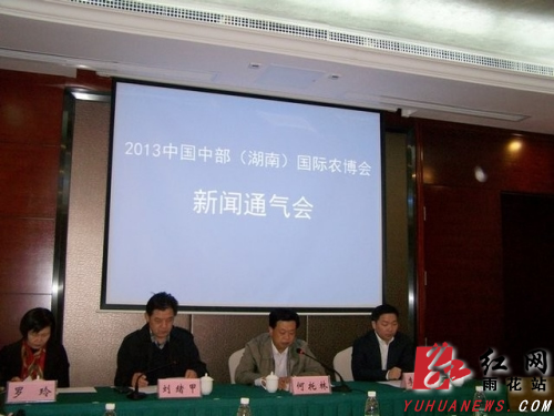 红网雨花站11月25日讯(宣传部 供稿)11月24日,记者从在湘城大酒店召开的“2013中国中部(湖南)国际农博会”新闻通气会上获悉,由国家农业部和湖南省人民政府共同主办,湖南省农业厅、长沙市人民政府承办,雨花区人民政府、省农业厅市场信息处、红星实业集团有限公司具体执行,主题为“绿色与品牌、交流与合作”的2013中国中部(湖南)国际农博会将于11月27日上午在湖南长沙红星国际会展中心正式拉开大幕。27日至28日为专业观众参观日;29日至12月4日对市民全面开放。经过组委会紧锣密鼓的筹备,目前各项准备工作已基本就绪。