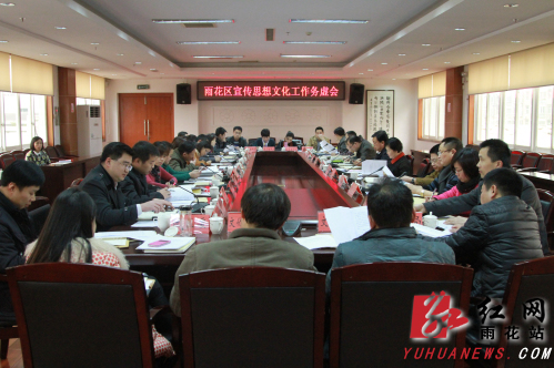 红网雨花1月10日讯(宣传部 供稿)1月9日,全区宣传思想文化工作务虚会在区会议中心303会议室召开。各街道和相关部门汇报了2013年的工作情况,对存在的问题进行了反思,对2014年的工作进行了务虚。一年来,全区宣传思想文化工作取得了丰硕成绩,理论武装、舆论引导、文明创建、文化建设等多项工作创品牌、夺奖牌、当先锋,优秀工作领跑全市,走进全省、走向全国。区委宣传部对大家的倾情付出和辛勤劳动表示感谢,对2013年工作进行了全面系统的总结,对相关工作做了安排部署。