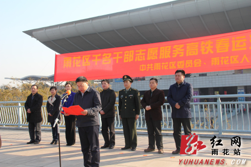 红网雨花站1月23日讯(分站记者 晏伟 姜兆轩)“我承诺:尽己所能,不计报酬,帮助他人,服务社会。践行志愿精神,微笑服务,举止文明,为2014年和谐春运贡献力量!”2014年1月23日上午9时,伴随着嘹亮的宣誓口号,雨花区2014年“情系高铁枢纽 服务春运出行”——千名干部志愿服务高铁春运活动正式拉开序幕。