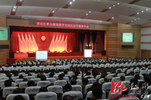 红网雨花站2月8日讯(分站记者 晏伟) 2月7日上午,雨花区召开2014年开局工作动员暨群众路线教育实践活动专场报告会,全体在职县级领导出席会议,各部门、各街道班子成员,区治机关院内各部门单位机关干部代表参加会议。