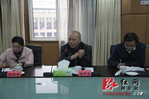 红网雨花站2月26日讯(安监局 供稿) 2月21日下午,省委政法委常务副书记宋甲武、政治部主任熊晓强、机关党委专职副书记任建君一行在市委政法委政治部主任李丽萍的陪同下来到雨花区,就省委政法委下派到雨花区挂职锻炼一年的干部工作情况进行征求意见,区委书记周杏武,区委常委、组织部长、统战部长冯聪龙,区委常委、政法委书记王维宁,以及有关部门、相关街道负责人出席会议。
