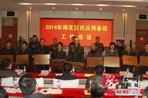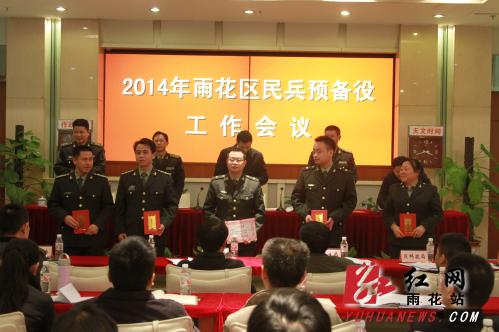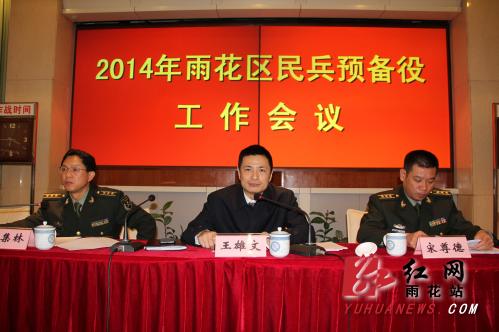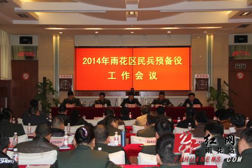 红网雨花站3月3日讯(人武部 供稿)2月28日下午,雨花区2014年民兵预备役工作会议在区人武部召开。区领导王雄文、宋尊德、肖集林、李国军、周新磊,区国动委成员单位领导,各街道、驻区院校和企事业单位的武装工作负责同志,民兵营长和基干民兵代表参加了会议。