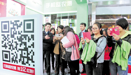 “扫码逛农博,抢1亿红包”促销活动吸引不少逛展的市民争相刷屏。贺文兵 摄