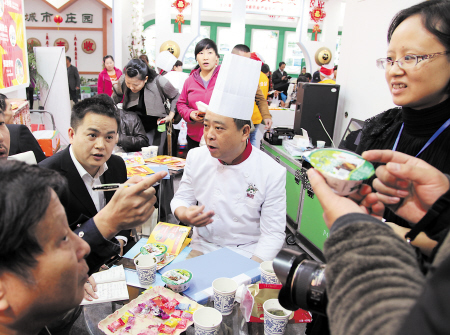 国宝级第一代湘菜大师王墨泉亲自担任出品顾问,王大师的高足、新生代湘菜大师陈灿下厨研发,新老大师同挺一个牌子,这算不算大牌?昨日,在农博会聪厨方便菜的展位,带着师傅的秘传心授,陈灿身穿大厨制服,现场展示方便菜的加热吃法。湘菜经典里的毛家红烧肉、麻辣子鸡,湘西名菜芷江鸭、外婆菜,浏阳口味粉皮黑山羊、手撕火焙鱼,都是大师带着弟子在厨房精心研发,真空碗装后全程冷链运送至农博会现场。大师所需要做的,就是撕开包装,微波炉叮一下或蒸锅打打气,美味轻松来。