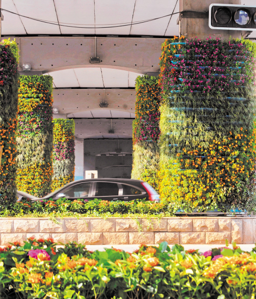 全省首个立体绿化项目现身东塘立交桥,将水泥丛林变成都市花海。