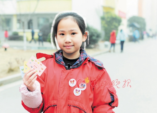 期末,老师将根据学生本学期的综合测评,向学生发放胸针和活动卡片。 均为长沙晚报记者 邹麟 摄