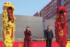 湖南高桥大市场股份有限公司董事长罗映红和副董事长刘金华女士在2014中国·高桥首届酒店用品博览会开业庆典上。刘亚娟 摄