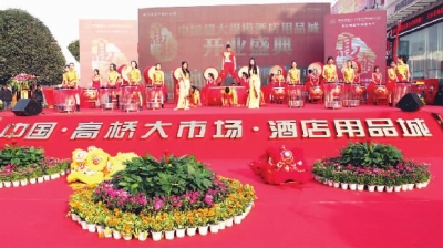 2014年12月21日,湖南高桥大市场酒店用品城盛大启幕。图为开幕式现场表演《鼓舞高桥》。刘亚娟 摄