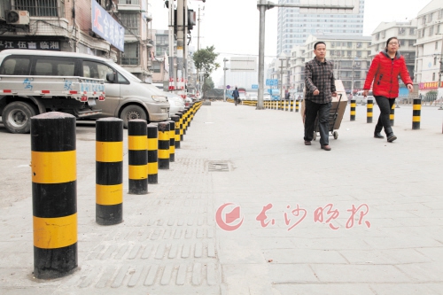 —分享— 高桥大市场周边的人行道长期被送货拉货的车辆所占,造成行人“无路可走”。今年初,雨花区高桥街道在高桥大市场周边的人行道上安上隔离桩,隔出“绿色通道”。长沙晚报记者 贺文兵 摄 来源:长沙晚报 作者:贺文兵 编辑:周哲文