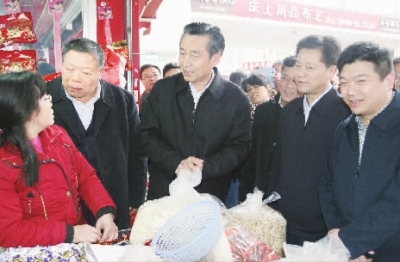 副省长戴道晋(中)一行到湖南高桥大市场开展市场调研,向经销商了解食品安全情况。