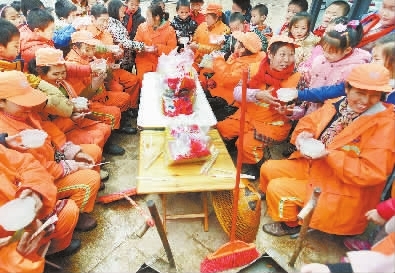 3月5日,长沙市雨花区枫树山东南海小学的学生来到曲塘路环卫流动站,给环卫工人送上热腾腾的甜酒和小礼物。当天,该校开展“学习雷锋,关爱他人”活动。同学们在老师的带领下走出校门,给公交司机、环卫工人、小区保安、消防战士、敬老院孤寡老人、省儿童医院的康复儿童送去慰问品。