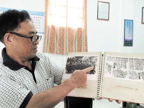 “我们年纪虽小,抗日救国不辞劳!”66岁的孙范民一边哼着这首歌,一边架起老花镜,翻开一本相册,找到了一张泛黄的黑白合影。照片中的孩子们头戴帅气的童子军帽,眼神透亮,翕动的嘴唇仿佛在高歌。