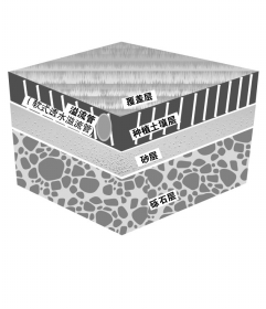 根据张阳的介绍,雨水收集与利用的浅草沟将植被下的土壤进行了分层。最底下是砾石层,因为颗粒大,空隙足,能涵养一定水源,往上便是砂层,接着是种植土壤层,然后才是植被的覆盖层。在覆盖层中,还铺设了有孔的软式透水溢流管。