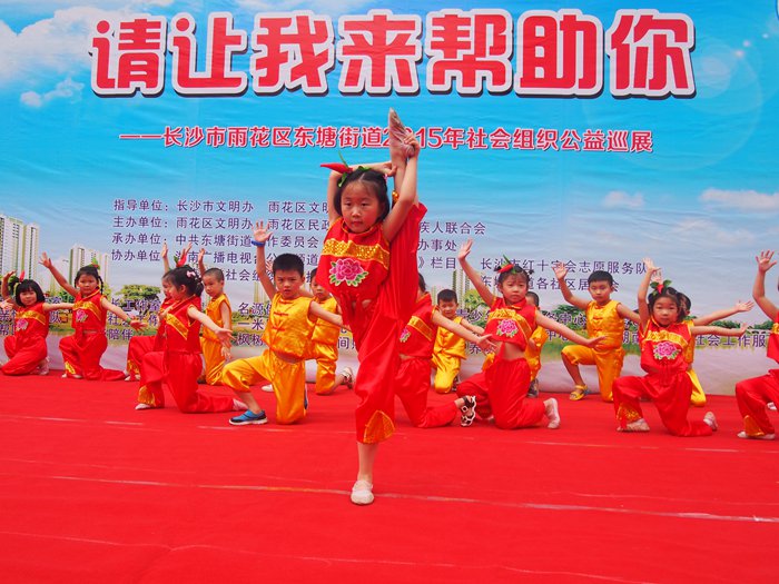 活动在孩子们轻松欢快的《中国范》舞蹈中拉开帷幕。社会公益组织“老首长工作室”的负责人彭忠秋代表现场60多家社会公益组织发出长沙公益最强音:全体公益组织将积极合作,优势互补,团结协作将公益活动深入开展,惠及群众百姓,实现大家的中国梦。随后,湖南公共频道《帮女郎帮你忙》为东塘街道下辖10个社区“帮女郎爱心点”授牌,这意味着更多的爱心志愿者将成为正规帮女郎,在大街小巷中为居民排忧解难,创造美好生活。现场还为10家社区苦难户送去慰问物资,为他们送去公益组织的温暖关怀。