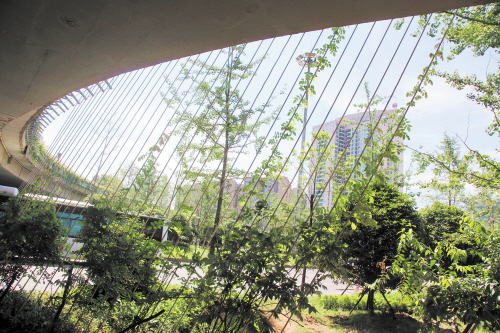 拉索设计如绿色琴弦,在桔园立交桥和地下通道口奏出了浓浓的绿意。