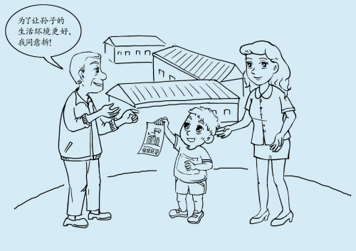 “要么辞职不干,家里能够养活你;要么继续干你的工作,我和你们断绝关系!”当晚,李钉和丈夫被公公赶出了家门。李钉没有放弃,想到公公平时对孙子疼爱有加,为何不让自己5岁的儿子试一试?于是,她对儿子描绘了拆违后的景象,告诉他还会建很多游乐场,有很多小朋友一起玩,还可以在家门口滑冰。经过几个来回,黄文善终于心动配合。