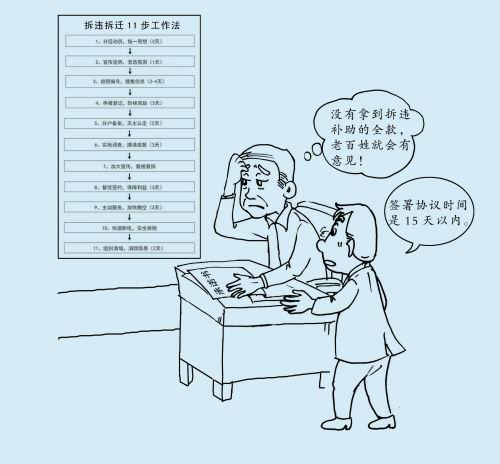 霸蛮未必总管用,灵活才是真艺术。以迂为直,就是在遇到“针尖对麦芒”的矛盾和复杂情况下,避开锋芒、绕开焦点,从外围以情动人,顺利拆违。